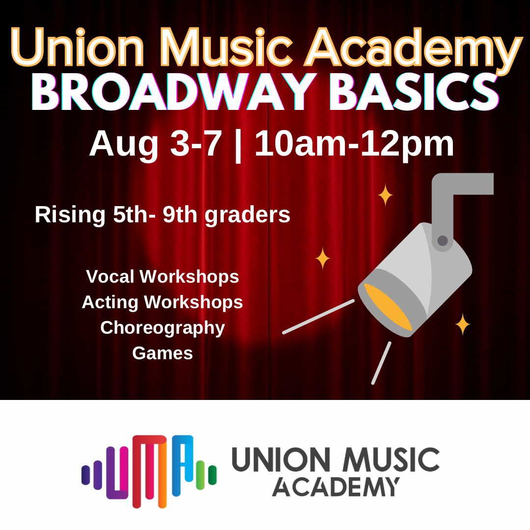 Join us for this high-energy musical theater camp! Camp is Monday-Friday from 10am-12pm. Available to rising 5th-9th graders, no experience necessary. The camp will be held at Union Music Academy. $150 tuition. At least 6 students must be registered for the camp to take place.